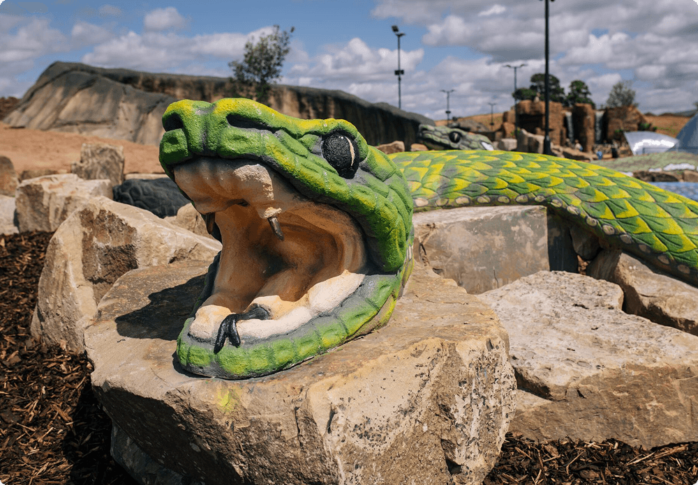 Come on a journey around Australia and enjoy some of Australia’s famous landmarks while playing a round of Adventure Golf! Adventure Golf is great day out for Family and Friends alike. A fun, themed competition which involves putting a Golf Ball around challenging themed holes. Suitable for all ages, groups and all abilities it’s a great day for some light hearted social competition. Every hole has its own Australian based theme – from Sydney Opera House, to King George falls, you’ll even play through the centre of Uluru. Watch out for the wildlife as you’ll encounter snakes, hear the Australian song birds and even see Tasmanian Devils – not to mention Skippy the Kangaroo.